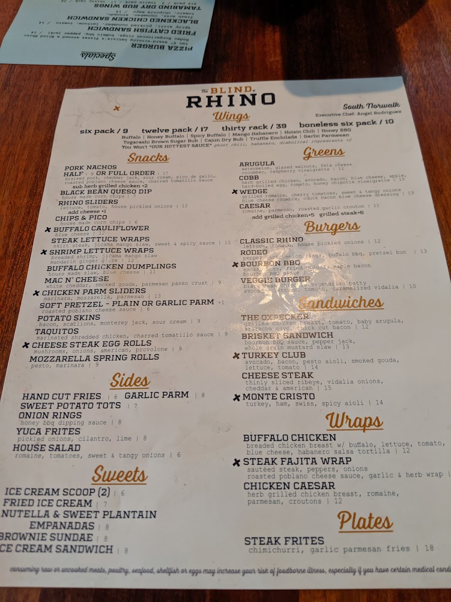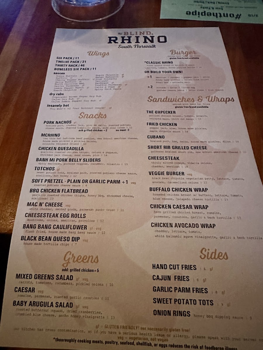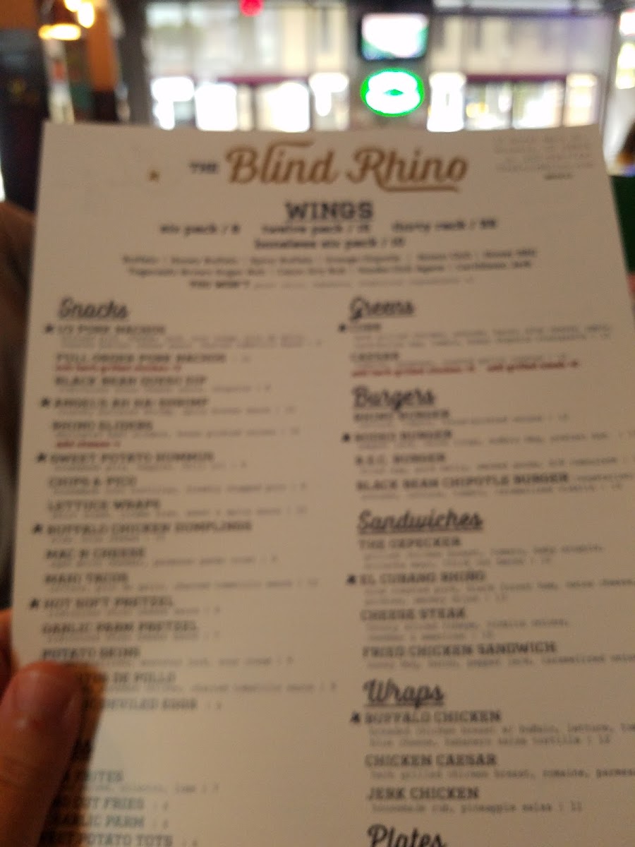 Specials like the Grilled Chicken Cordon Bleu Sandwich and the luxurious Steak Frites elevate your dining experience to new heights. Customers rave about the epic wings, crispy and flavorful, along with a wide selection of craft beers to quench your thirst. The Blind Rhino not only serves great food but offers a welcoming space for friends to unwind. Overall, it's the perfect blend of great food, lively sports, and fantastic service.